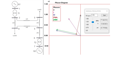 • Software written in Visual C++ that allows to vary the excitation voltage of a generator through a Windows slider control and to see how the vectors and graphs vary, when sliding the control. You can try it out by downloading the free executable from here.